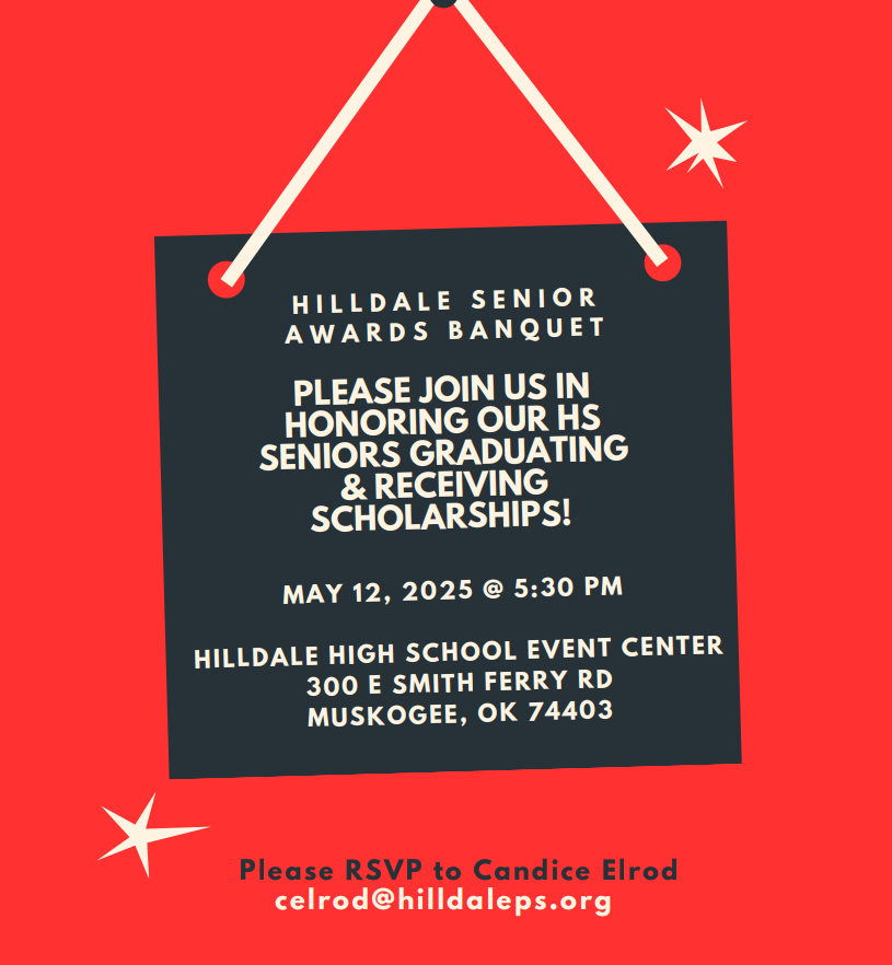 Mostly clear, with a low around 24. Calm wind becoming south around 5 mph after midnight.Hilldale Public Schools313 E Peak Blvd.Muskogee, OK 74403